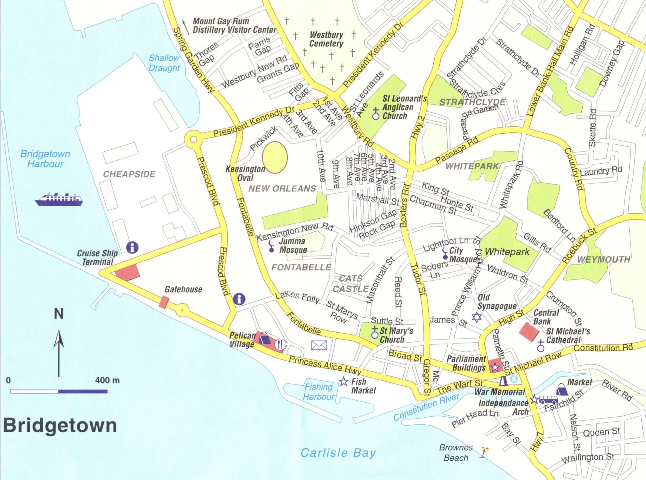 Downtown Bridgetown is mostly flat, though some pavements may be uneven.