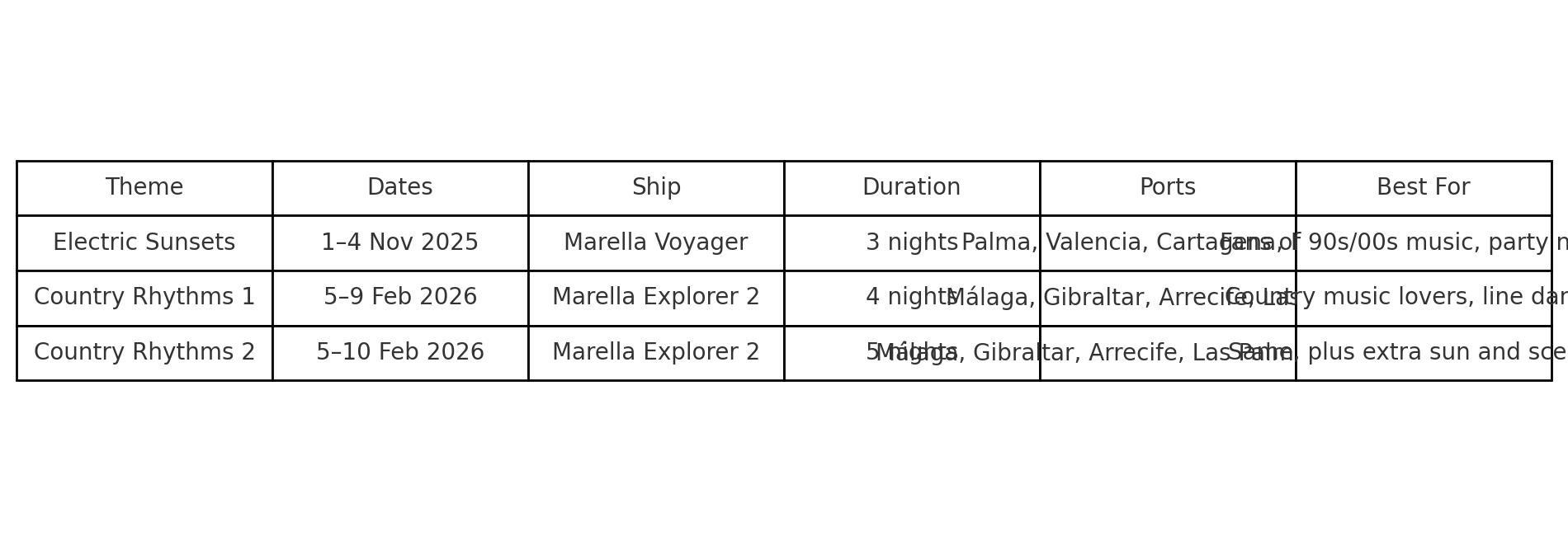 Want to shake up your usual sailing? Marella’s ever-popular themed cruises are back with even bigger acts, new genres and an all-adults atmosphere. Whether you’re into throwback anthems or country twang, these sailings promise wall-to-wall entertainment, immersive fun and a completely different vibe at sea.