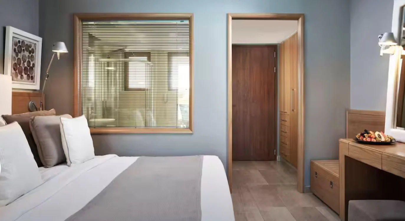 Deluxe Family Partition Room with picture window into bathroom. Image: TUI
