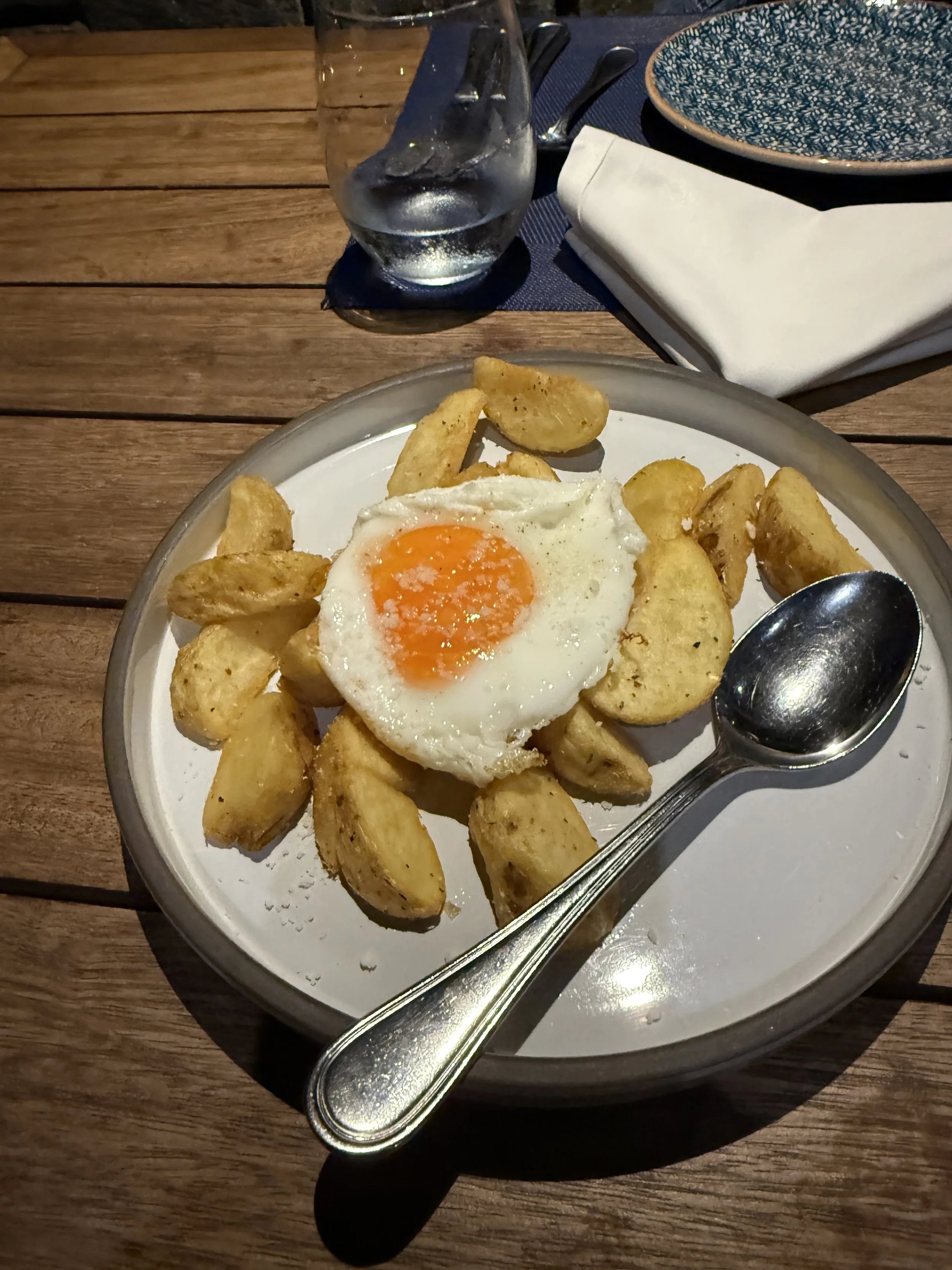 We had read lots of positive reviews, but we were actually disappointed. It started off well when we were served a lovely meze platter of dips, olives and warm pitta bread. The shared starters, other than the ubiquitous Greek Salad, were a little strange - basically sausage, eggs and chips Greek style, with more pitta. The much-anticipated slow cooked pork shank was replaced by pork steaks, which the waiter actually told us were “hard” and not as described on the menu. Needless to say we didn’t order this, opting instead for a mixed kebab. However, when the beef, pork and lamb kebabs arrived they were reformed kofte type sausages served between more pitta. I usually love authentic Greek food, but felt the Greek night in the buffet and Cosmopolitan Restaurant was far superior to the restaurant options.