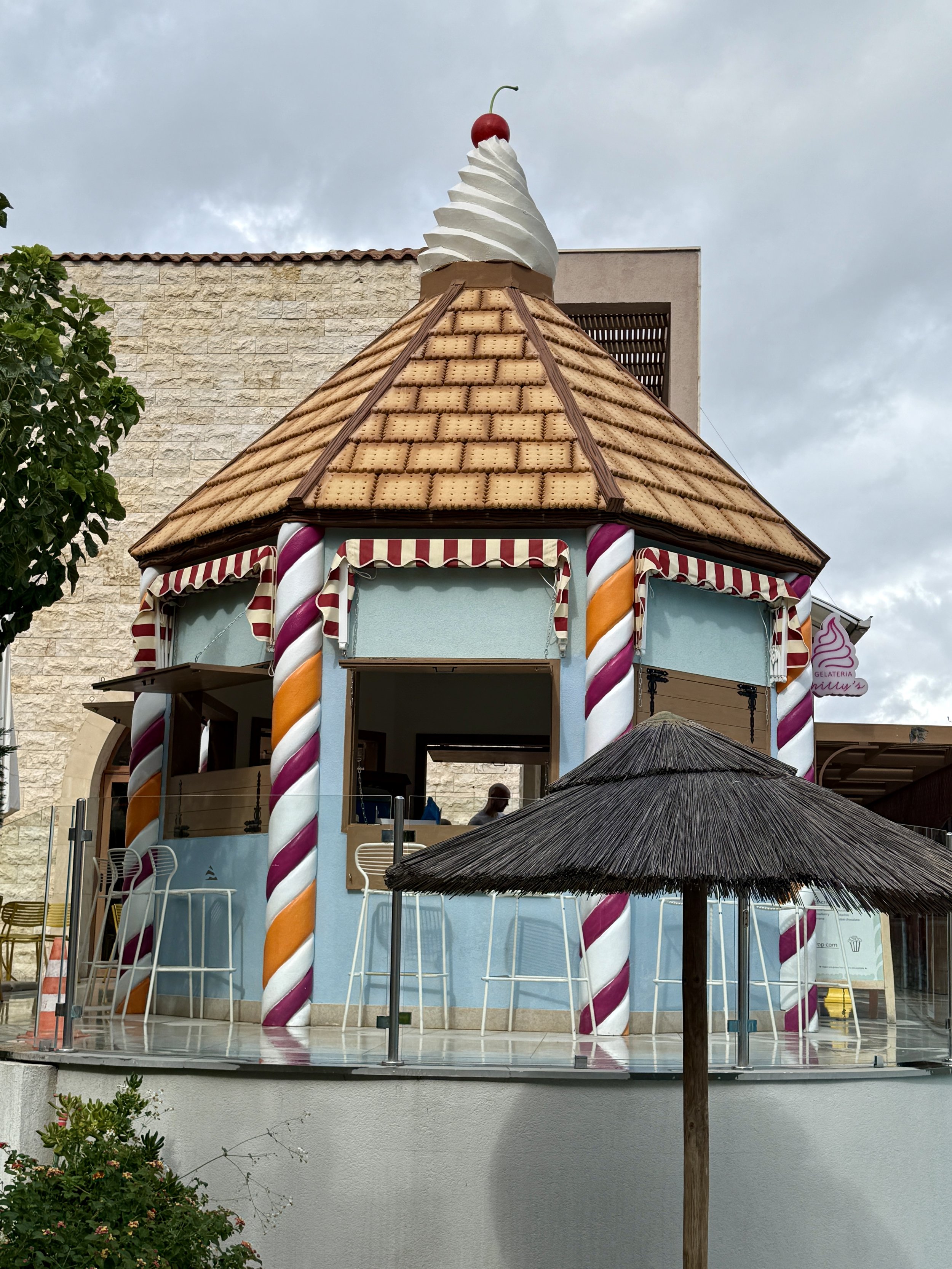 You can get complimentary ice-cream here, including soft-serve (vanilla, chocolate of a mix of the two), or scoops in waffle cones. Flavours included vanilla, chocolate, strawberry, pistachio, banana and Dubai Chocolate. They also serve popcorn - but go earlier in the day as they seemed to run out quickly.